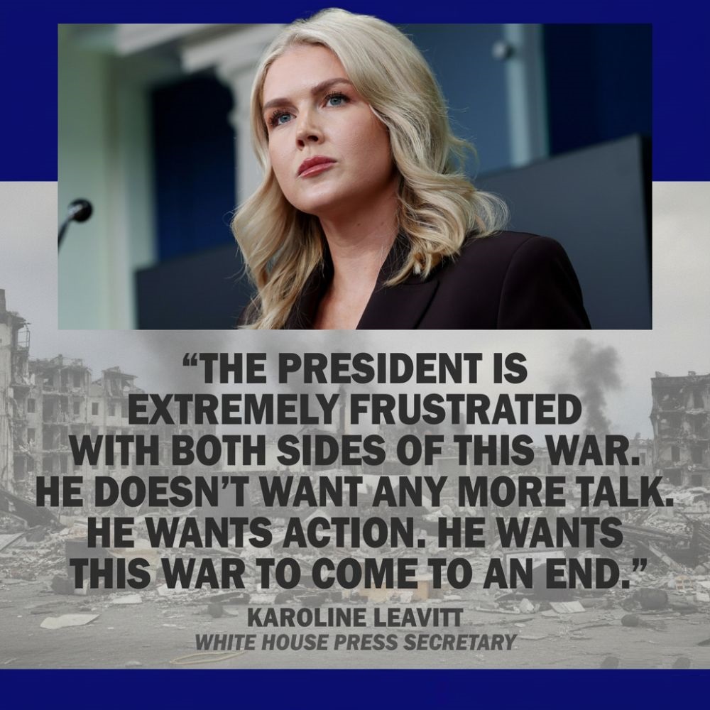 “The president is extremely frustrated with both sides of this war,” White House press secretary Karoline Leavitt told reporters. “He doesn’t want any more talk. He wants action. He wants this war to come to an end.”